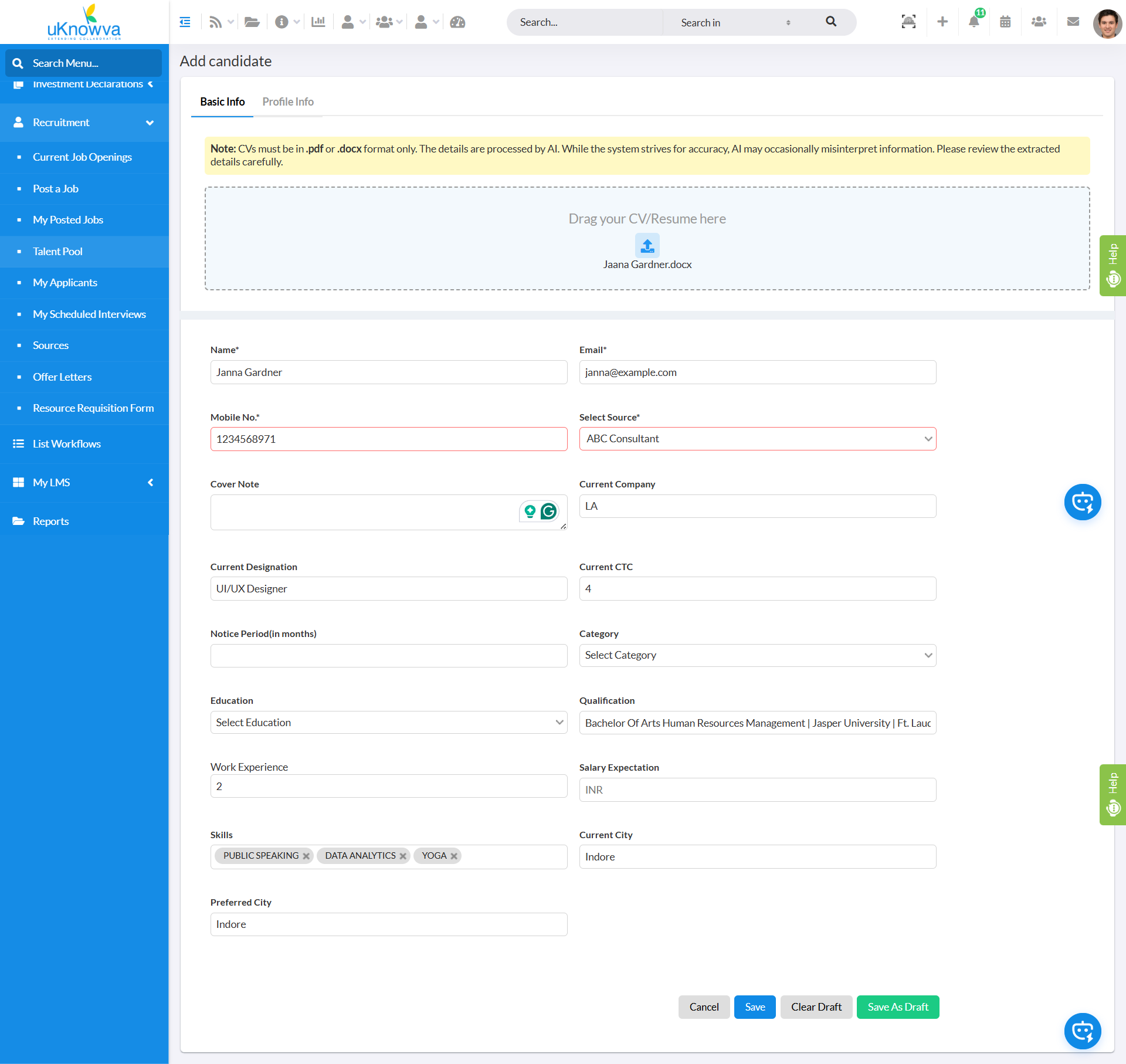 The Smart CV Parser by uKnowva HRMS is your ultimate data extraction tool, powered by advanced OCR (Optical Character Recognition) technology.