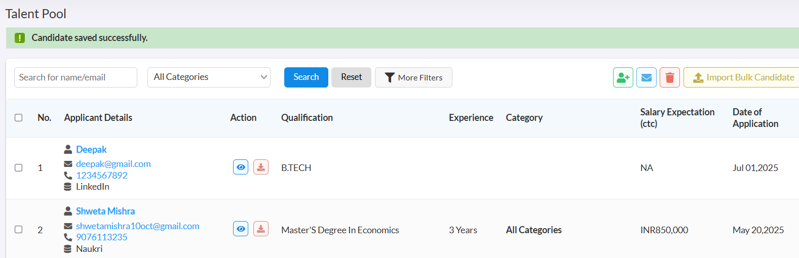 It scans resumes, extracts key details like skills, designation, current CTC, job alignment, and contact information, and adds them to your talent pool—all in seconds.